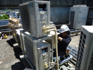 某工場様 事務所棟の業務用エアコン更新現場です。