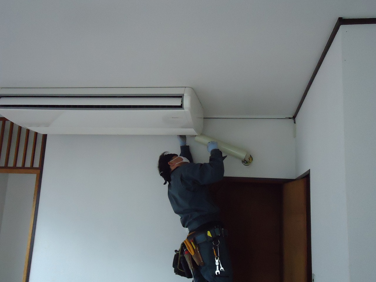本日は、中川区の(株)タクト様新事務所に空調機 天吊4馬力×2台を設置させて頂きました。
